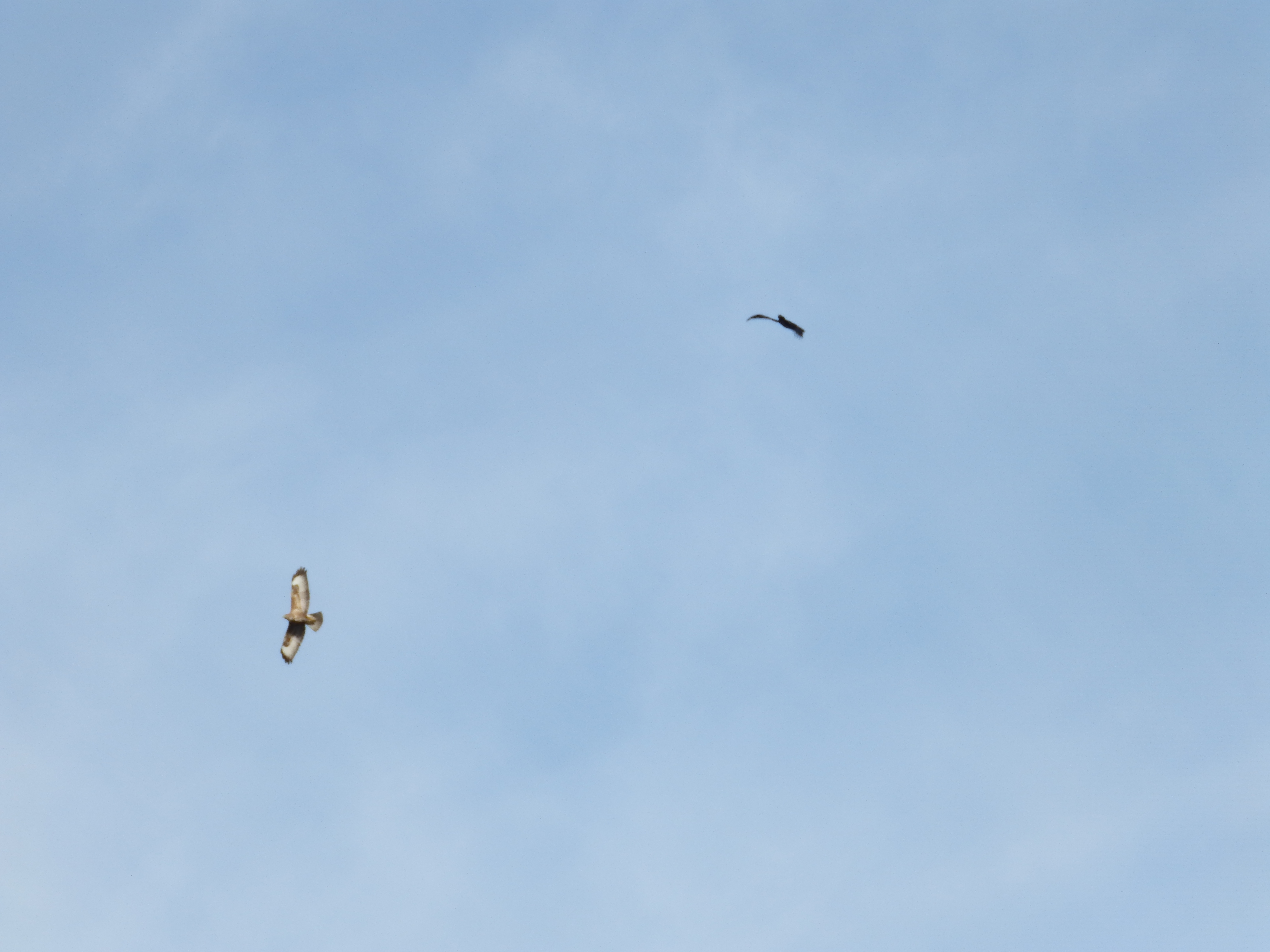 Buzzard pursued by crow