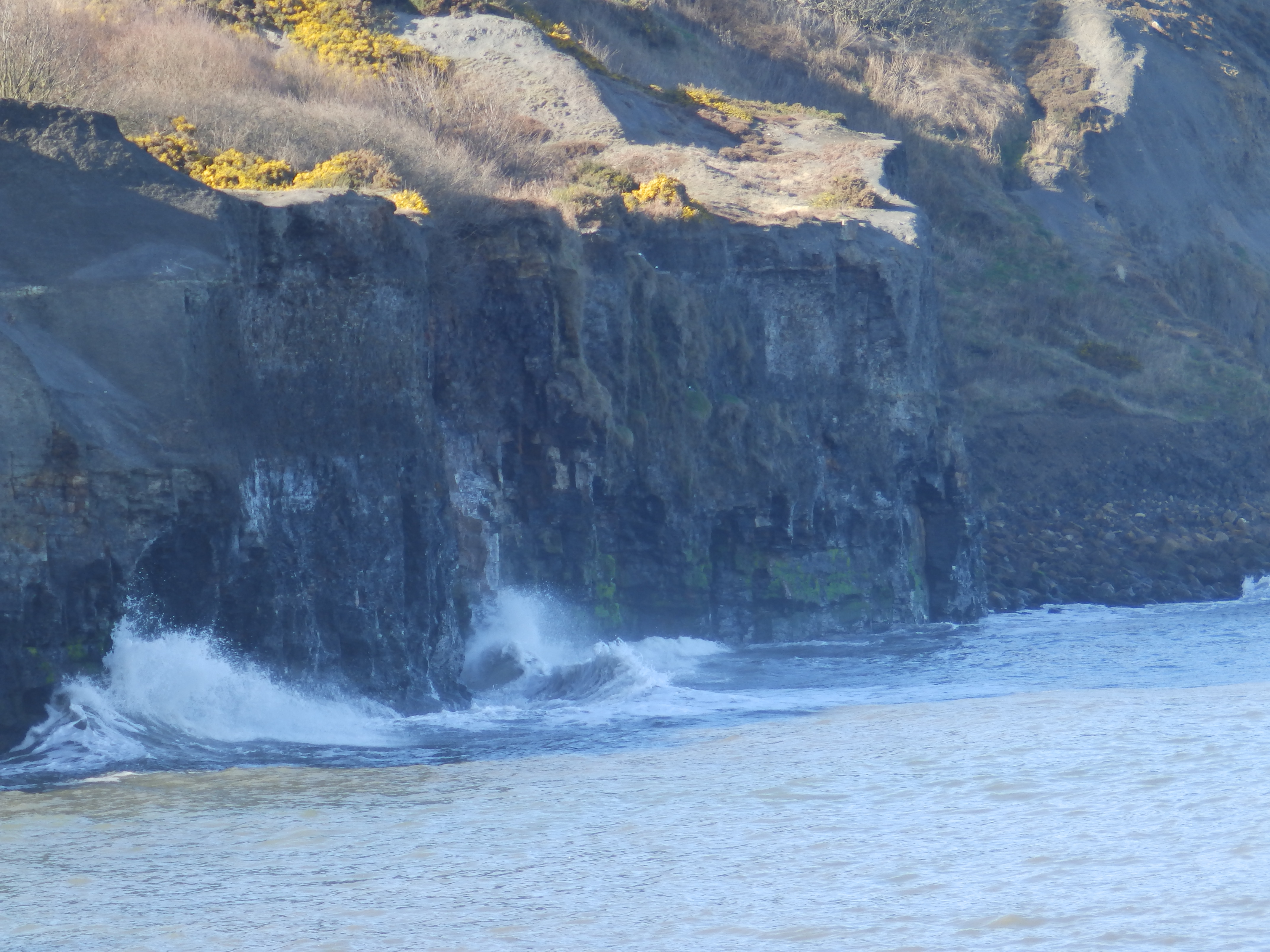 Waves breaking on the cliffs at Sandsend