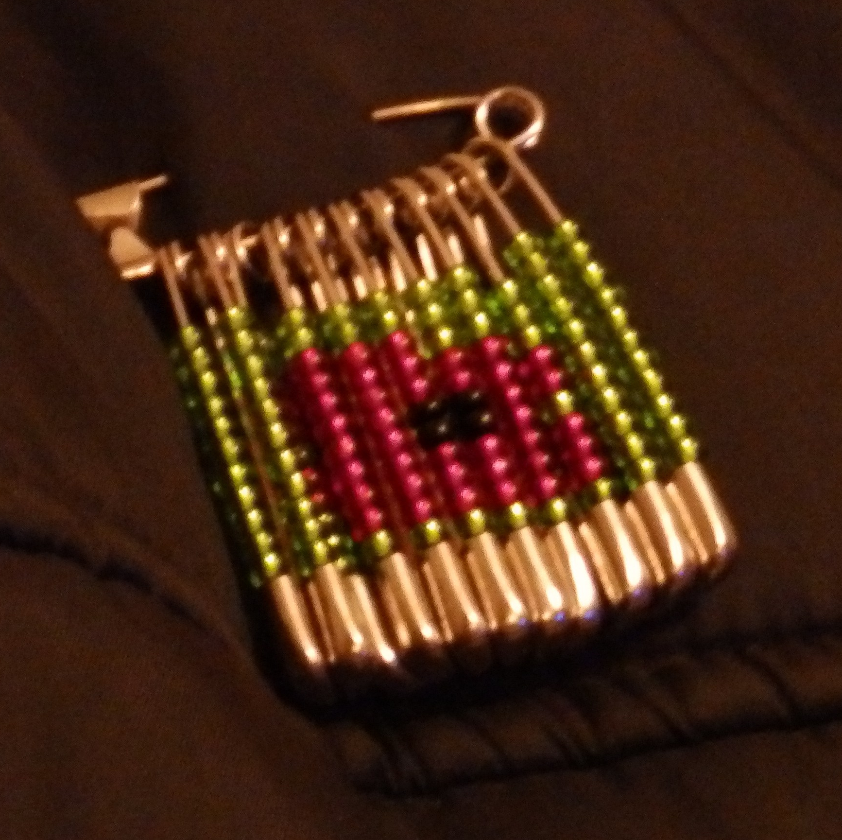 Poppy Brooch – beads and safety pins